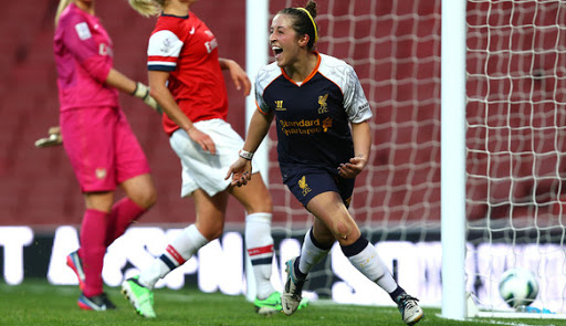 Natasha Dowie against Arsenal at Anfield