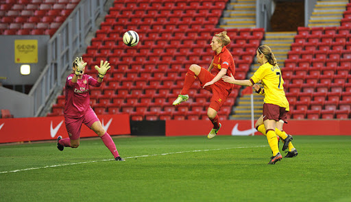 Liverpool began the league season away at Sincil Bank, the home of Lincoln Ladies. In windy conditions Natasha Dowie put Liverpool ahead early on and despite many chances we won the game by just one goal to nil. Next up for Liverpool was a tough encounter away at reigning champions Arsenal, or so you would think. 2 goals either side of half time from Amanda Da Costa and 2 more from Dowie and Louise Fors embarrassed Arsenal at the Emirates in their first league defeat since 2011. Five days later we were back in London again, this time facing Chelsea who like us had strengthened their team over the winter off season. Whitney Engen scored her first Liverpool goal to put us ahead but Chelsea went on to claim victory in controversial circumstances. For their winning goal Engen was clearly fouled in the build up yet this went unnoticed by the referee. After the defeat against Chelsea we hosted Lincoln at Halton Stadium in our first home league game this campaign, goals from Natasha Dowie, Fors and an own goal deflected in from a Fara Williams effort meant the reds raced 3-1 ahead. A brilliant goal from Precious Hamilton pulled a goal back for the Imps however Liverpool hung on to take all 3 points. Liverpool then made the short trip to Marine FC in Crosby for a mid week derby against Everton, despite a nervy start Liverpool began to dominate possession and capitalised on this when Nicole Rolser slotted the ball home. Everton came out fighting in the second half and their skipper Jill Scott equalised just after half time. The blues didn’t stay ahead for long as the reds ran rampant scoring 3 more goals through Fors, Corina Schroder and Dowie. Our final league game before the break was back at Halton Stadium against Birmingham, for the second time in a week we hit 4 goals past a team in blue. Rolser opened the scoring before Birmingham equalised from a corner. Lucy Bronze ensured we went in at half time 2-1 up with a thundering header while who else but Natasha Dowie scored our third goal of the game and Nicole Rolser got our fourth.