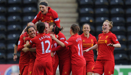 Liverpool began their 2013 FA Cup run away at a muddy Aston Villa, thumping the midlands side 5-0 with a Fara Williams hat trick and goals from Natasha Dowie and Louise Fors. Next up was a tough test against Premier League champions Sunderland, Liverpool went ahead through Lillie Fenlon-Billson but Sunderland pulled a goal back. Minutes from time Icelandic midfielder Katrin Omarsdottir scored the winning goal to set up a semi final tie against Arsenal. The semi final was a memorable occasion for players and supporters alike, playing at Anfield for the first time the ladies put in a great shift and at times outplayed the strong Arsenal side. The gunners opened the scoring through Ellen White before Natasha Dowie scored a great diving header at the Kop end to bring the scores level before half time. Kim Little was Arsenal’s match winner, taking them into the final with a goal from a counter attack on 52 minutes. Arsenal went on to lift the cup at Doncaster’s Keepmoat Stadium a month later.