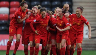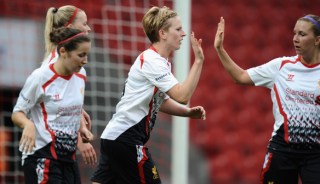 Liverpool team: Laws, Bronze, Bonner (C), Engen, Schroder, Williams, Fors, Gregorius (Omarsdottir), Rolser, Da Costa, Dowie