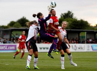 With 20 minutes to go of normal time, Liverpool peppered Bardsley goal – who was in inspired form producing a hat trick of saves. First she saved Dowie’s header, then a thundering Williams strike and Louise Fors’ goal bound effort following some silky skills on the edge of the box.