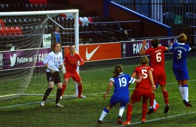 This win set up a quarter-final with Merseyside rivals Everton Ladies, on Saturday 26th April the first derby of the season enticed a crowd of 824 spectators who watched as Liverpool crashed out the cup following a great first-half performance from the blues.