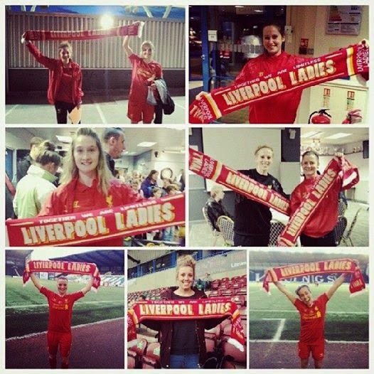 | Liverpool Ladies with their SupportHer App scarves! |