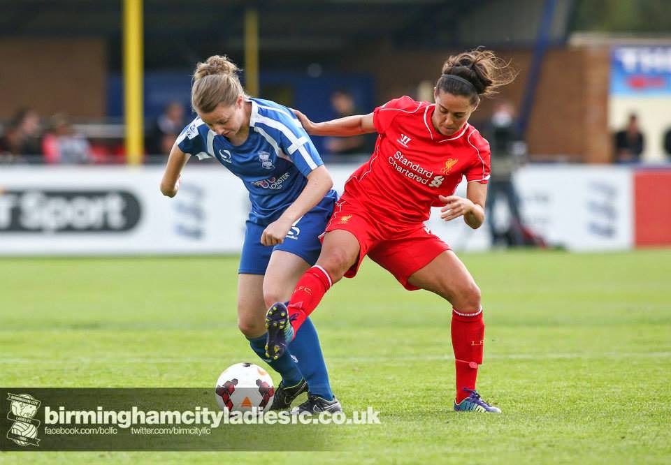Birmingham got the cup tie underway, with Hannah Dale standing strong in midfield, winning possession and drawing a foul. Despite this Liverpools struggled to retain possession during the opening stages, Becky Easton was called into action early on with one of her now trademark sliding tackles after Birmingham slipped the ball through, beating the reds central defenders.