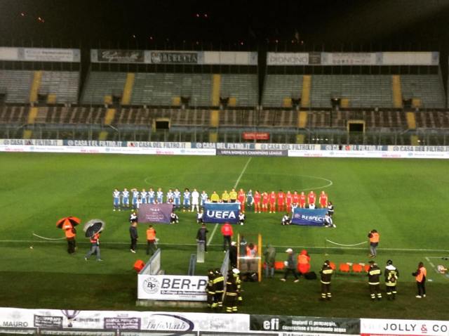 Beckwith captained the club’s development squad to the league title in 2014-15 and this was her first team debut – the young centre-back putting in a highly impressive, composed, calm and confident shift. Coming forward over the half way line to intercept one forward pass – flicking it to the feet of Omarsdottir – and, prior to that, hooking the ball away under pressure from Brescia no.9 Daniela Sabatino who had only Gibbons to beat if she had passed the defender.
