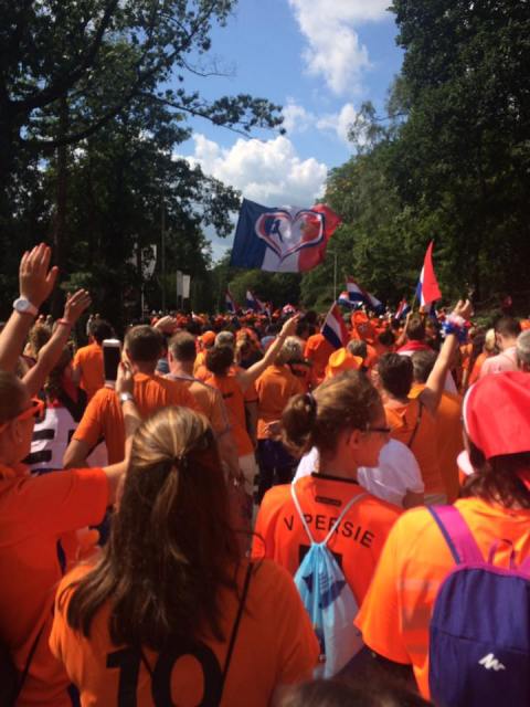 After meeting Ianthe myself and Deb went to do the fan walk from the fanzone to the stadium, it was a crazy 90 minutes of orange singing and dancing; resembling a pride march yet completely orange and with those epic Dutch dance along hits.